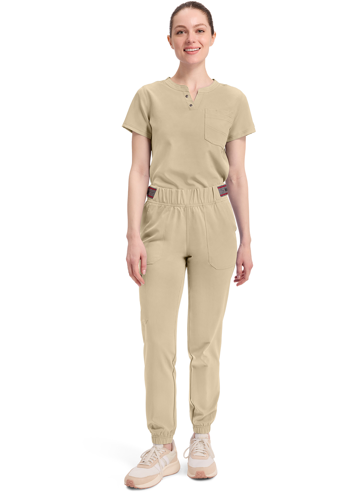 Логотип и детали строчки придают этим джоггерам со средней посадкой и современным кроем стиль от работы до выходных. Пояс на резинке усилен и включает внутренний шнурок. Логотип на эластичных вставках по бокам пояса добавляет стиля и комфорта. Пять карманов для удобного хранения: два передних кармана, один накладной карман с декоративными кнопками с логотипом на углах и два задних кармана с декоративной строчкой. Декоративная отстрочка на всех швах и эластичные манжеты завершают образ. Зауженные штанины джоггеров, ширина 32 см. Длина по внутреннему шву: 72 см.