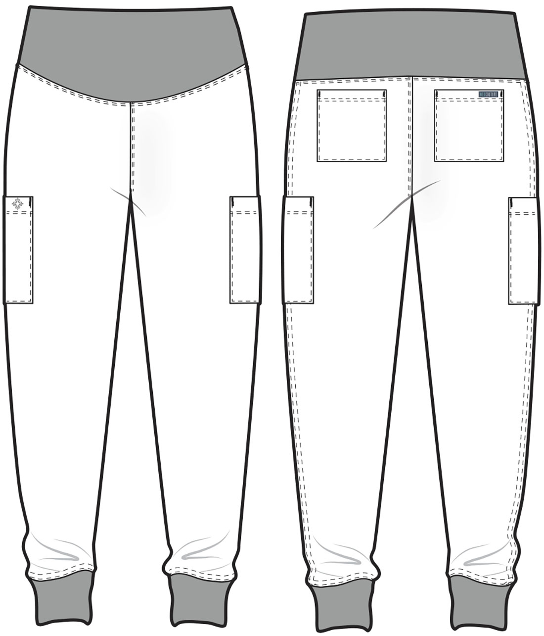 Джоггеры для беременных оснащены мягкой, окрашенной в тон трикотажной панелью на высокой талии для покрытия живота. Имеются четыре кармана для хранения: два накладных кармана и два задних кармана. Окрашенные в тон трикотажные манжеты на щиколотках. Зауженные брючины, ширина брючины внизу 23 см. Длина по внутреннему шву: 72 см.