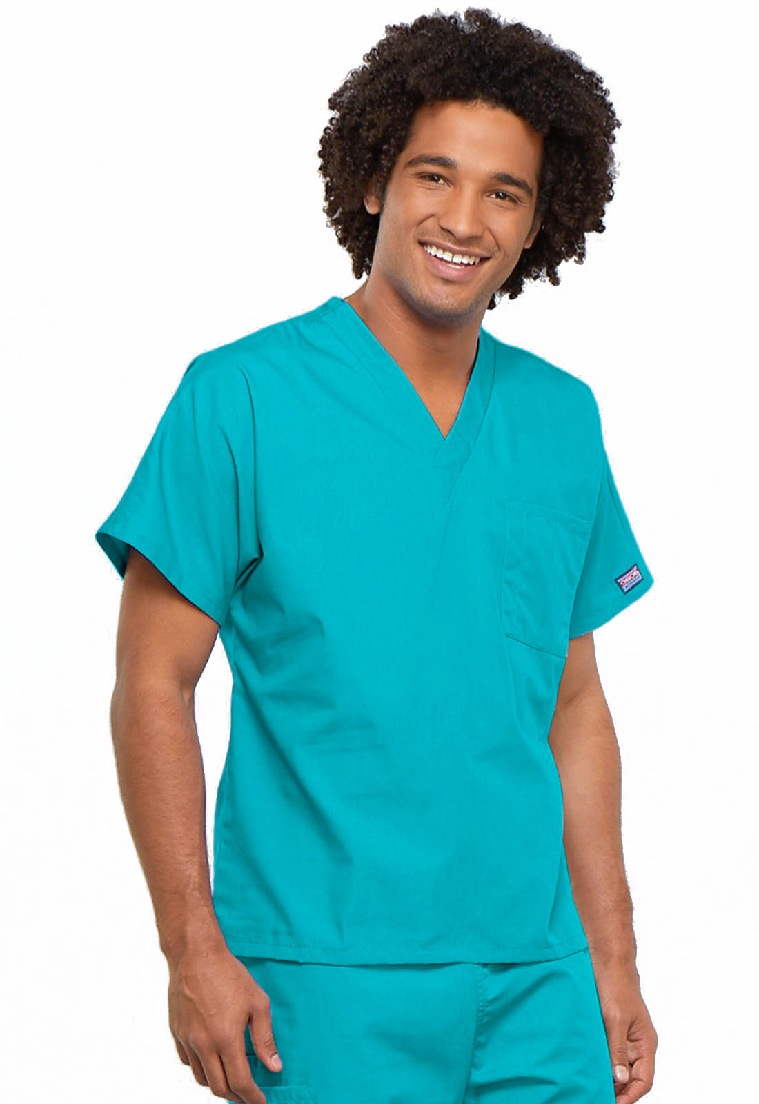 Медицинский топ унисекс 4777 Cherokee (Чероки) - топ подходящий и мужчинам и женщинам прямого покроя с цельнокроеными короткими рукавами и горловиной с V-образным вырезом. Нашивной нагрудный карман имеет отделение для ручки. Длина топа 70 см, поэтому его возможно носить как сверху брюк, так и заправленным.
