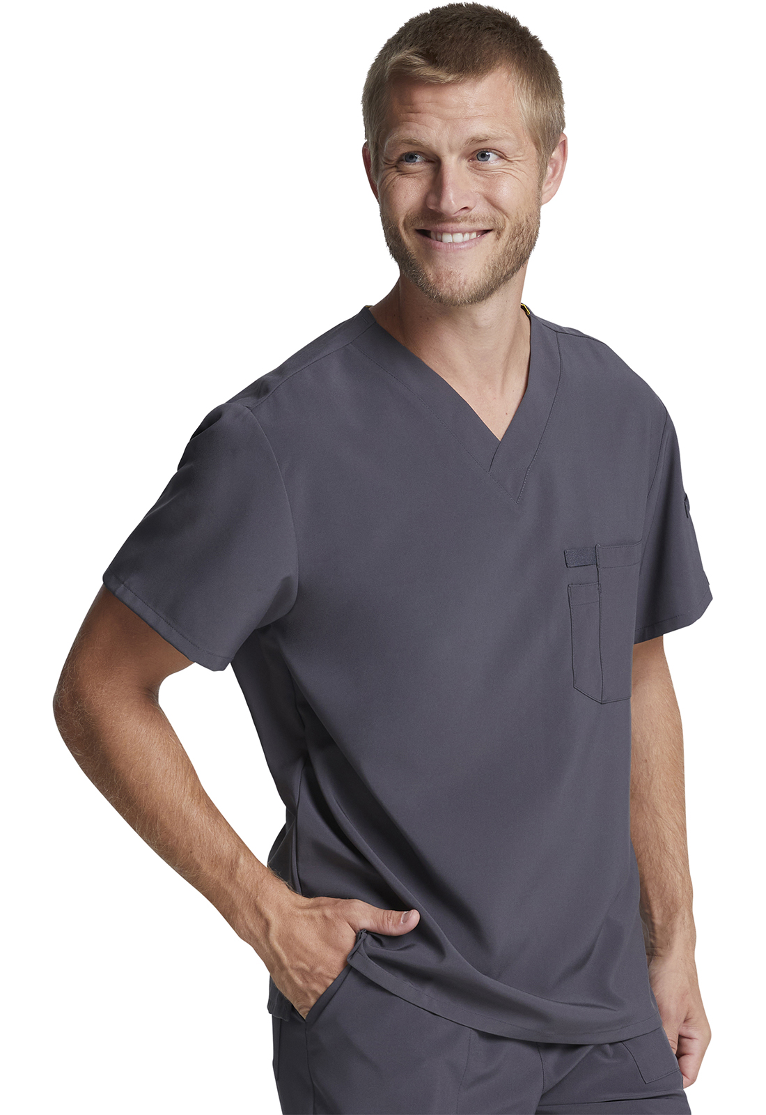Это лаконичный медицинский топ с коротким рукавом и V-образным вырезом воротника, созданный в США. Модель предназначена для мужчин-медиков. Топ выполнен из качественной современной ткани, состоящей из полиэстера с пятипроцентной примесью спандекса. Материал отлично отстирывается и держит форму. Вы можете заказать изделие одного из десяти различных классических цветов. Производитель предлагает широкую линейку размеров — с XS по 2XL. Топ имеет нагрудный карман. Изделие удобно в носке и не сковывает движений, а ткань, из которой оно изготовлено, приятна на ощупь.