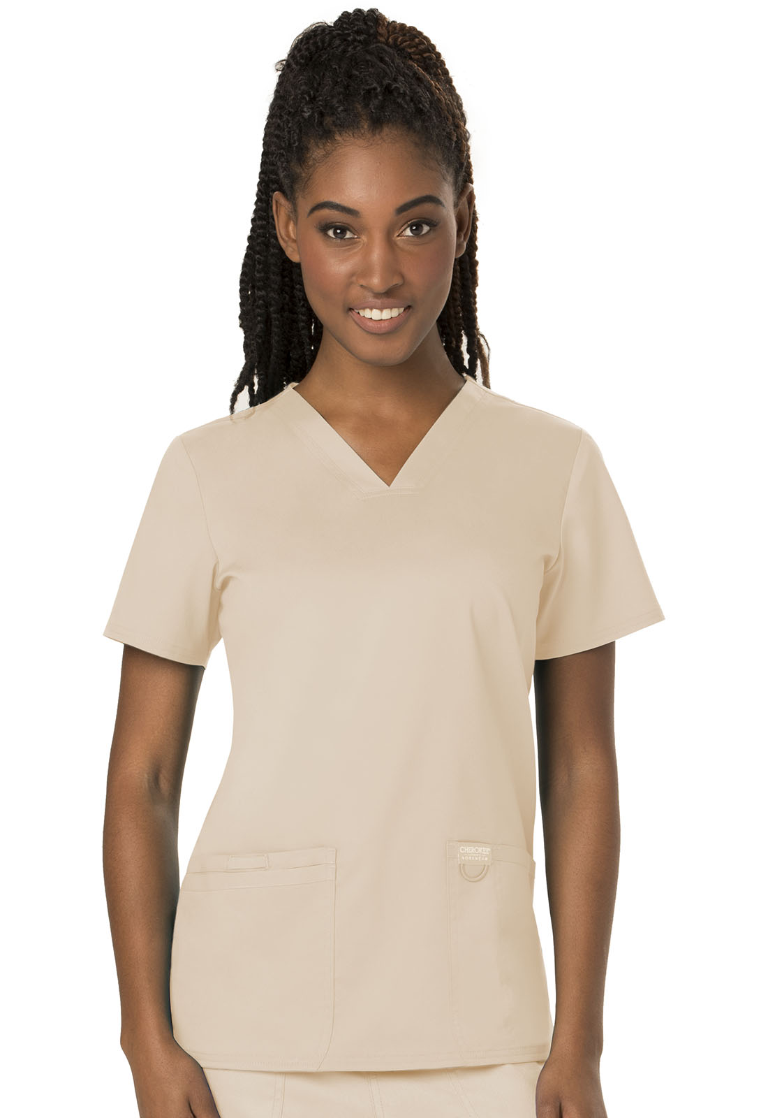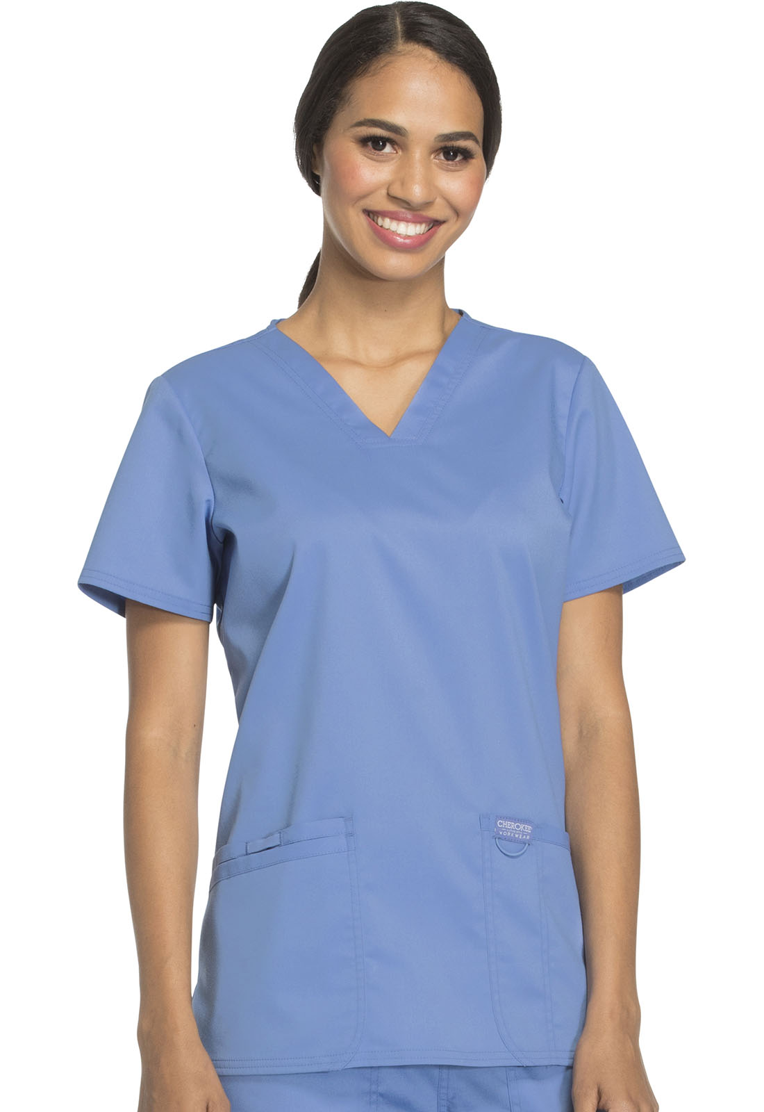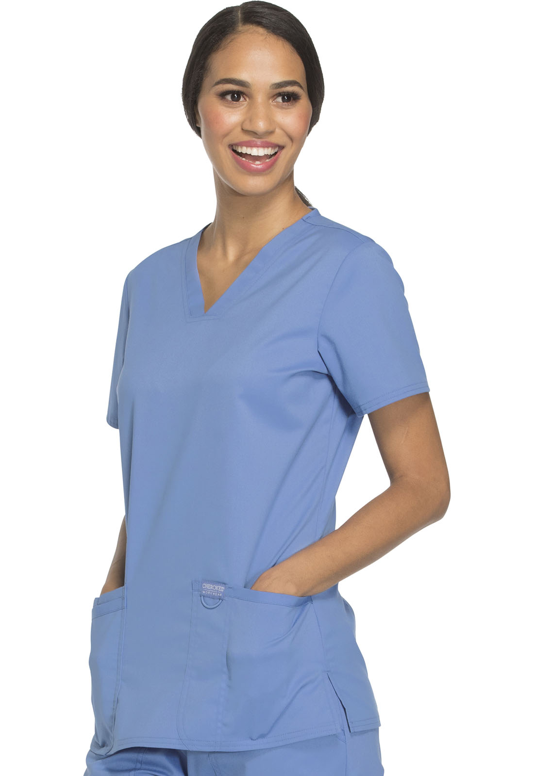 Эта модель — идеальное сочетание американского качества и доступной стоимости. Стандартный медицинский топ с V-образным вырезом и короткими рукавами из приятной на ощупь ткани, не стесняющей движений, подойдёт для повседневной носки. Производитель предлагает девятнадцать цветов, среди которых есть строгие оттенки синего, а также яркие красный и розовый. Для заказа доступны размеры от XXS до 2XL. Материал топа, состоящий из полиэстера и вискозы с примесью спандекса, отлично переносит стирку. Внизу модели расположены два кармана для самого необходимого. Длина по спинке 69 см.