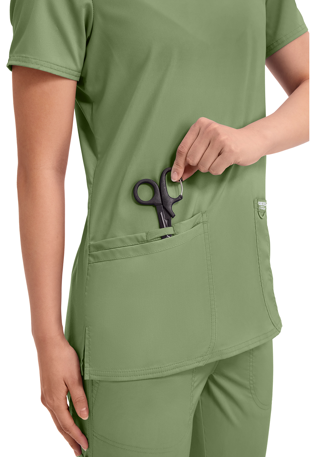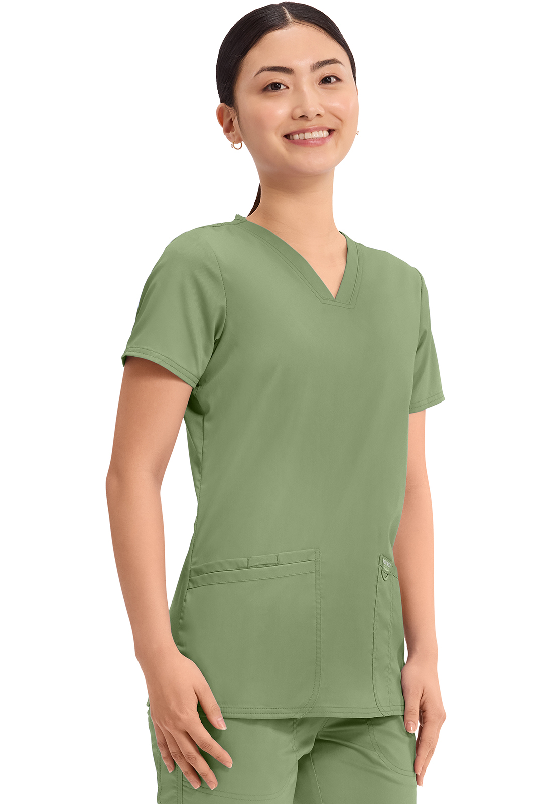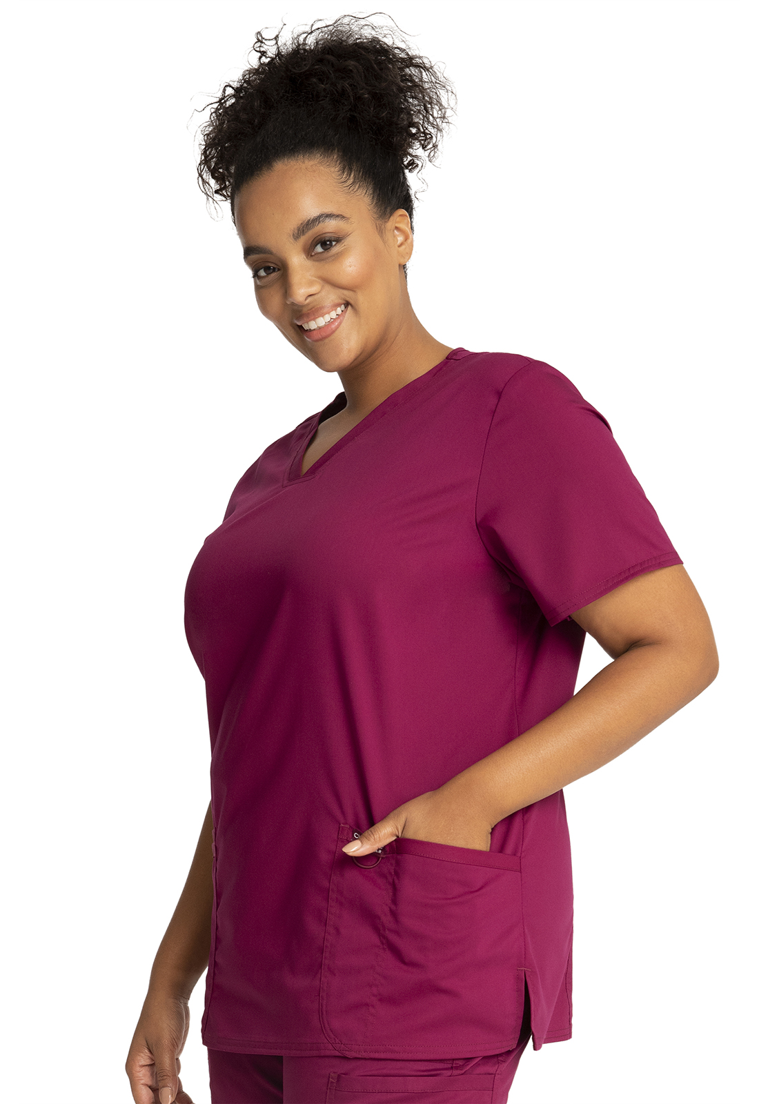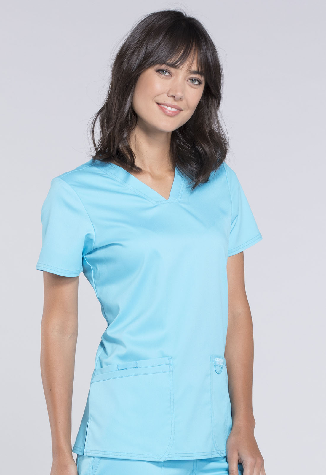 Эта модель — идеальное сочетание американского качества и доступной стоимости. Стандартный медицинский топ с V-образным вырезом и короткими рукавами из приятной на ощупь ткани, не стесняющей движений, подойдёт для повседневной носки. Производитель предлагает девятнадцать цветов, среди которых есть строгие оттенки синего, а также яркие красный и розовый. Для заказа доступны размеры от XXS до 2XL. Материал топа, состоящий из полиэстера и вискозы с примесью спандекса, отлично переносит стирку. Внизу модели расположены два кармана для самого необходимого. Длина по спинке 69 см.