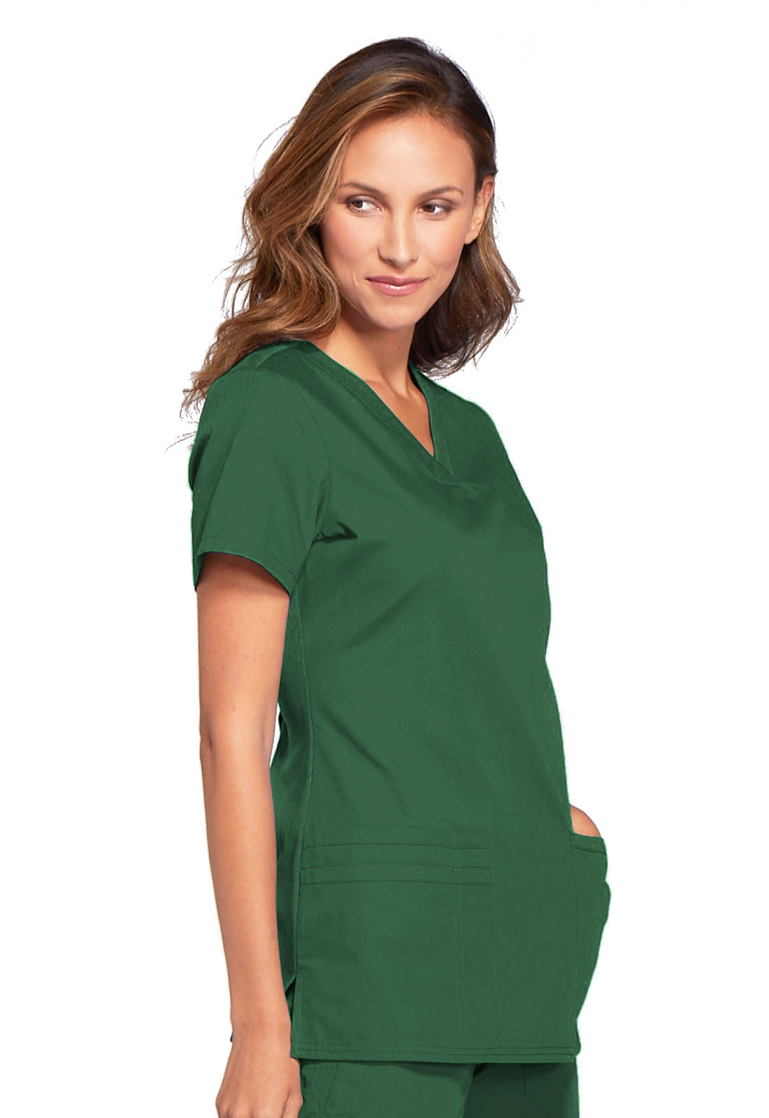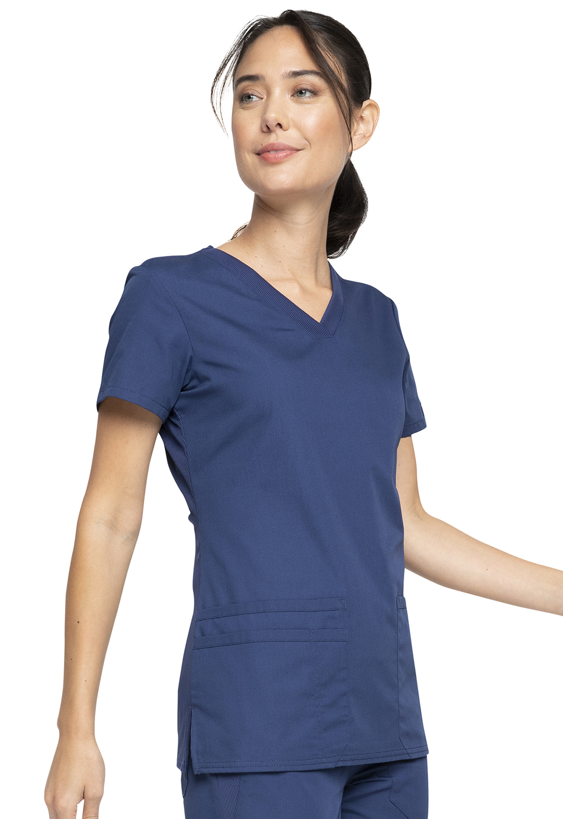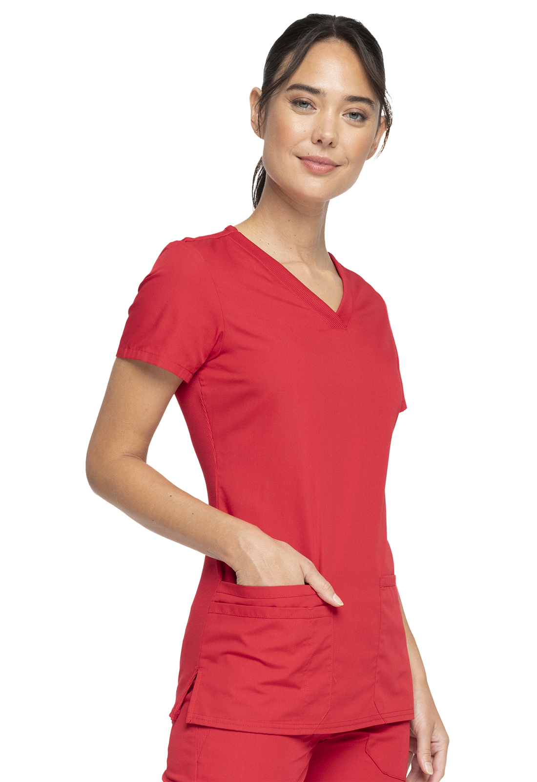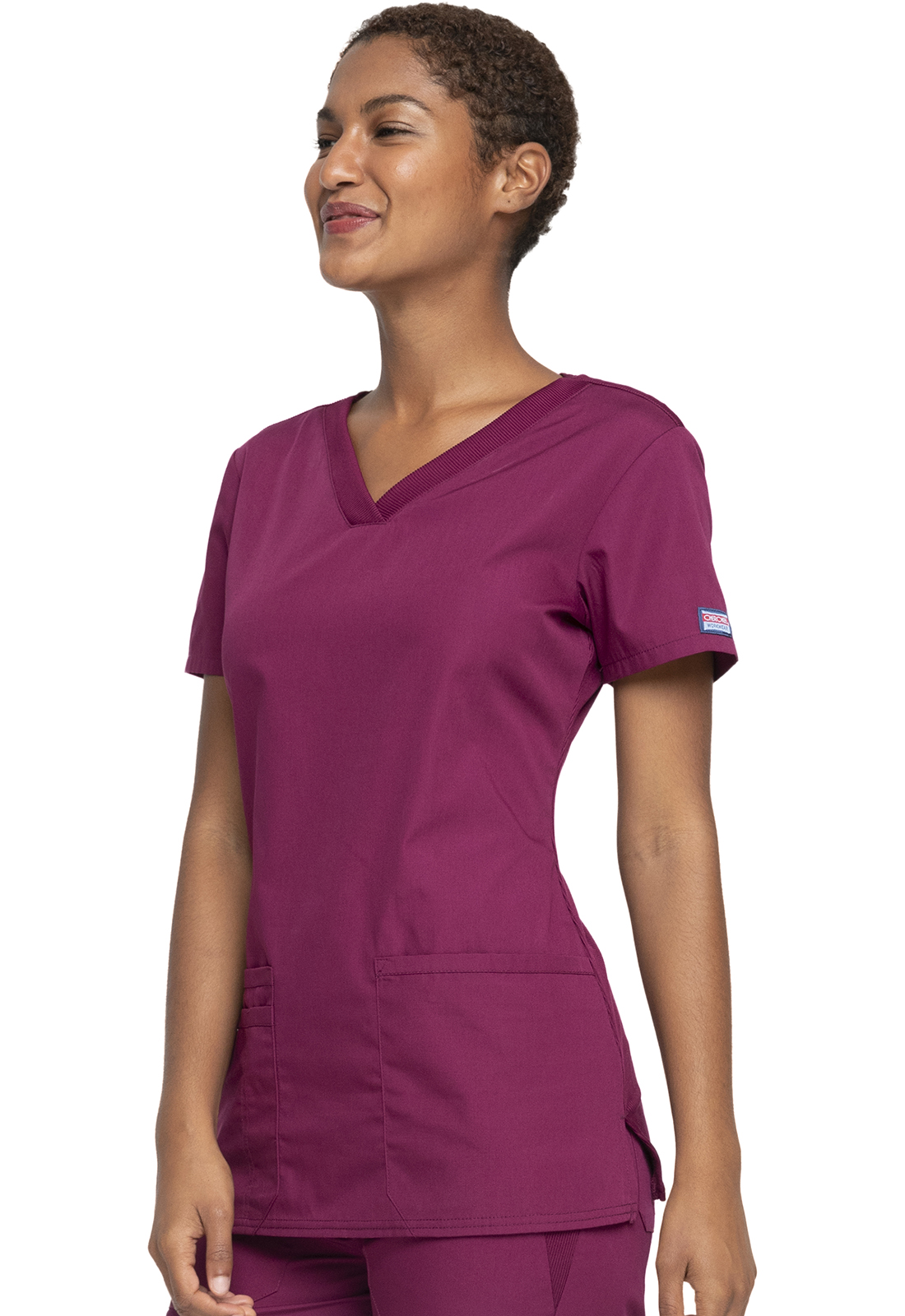 Ещё одна версия классического медицинского топа с короткими рукавами и V-образным вырезом. Изделие имеет два удобных кармана. Вы можете выбрать любой из двенадцати цветов: здесь есть целая гамма холодных оттенков, красный, фиолетовый, белый и чёрный. В составе материала — полиэстер (65 %) и хлопок (35 %). С этой современной ткани легко удаляется большинство загрязнений, а изделие не деформируется во время стирки. На сайте представлены все размеры от XXS до 2 XL. Топ произведён в США с соблюдением всех норм производства и контроля качества.